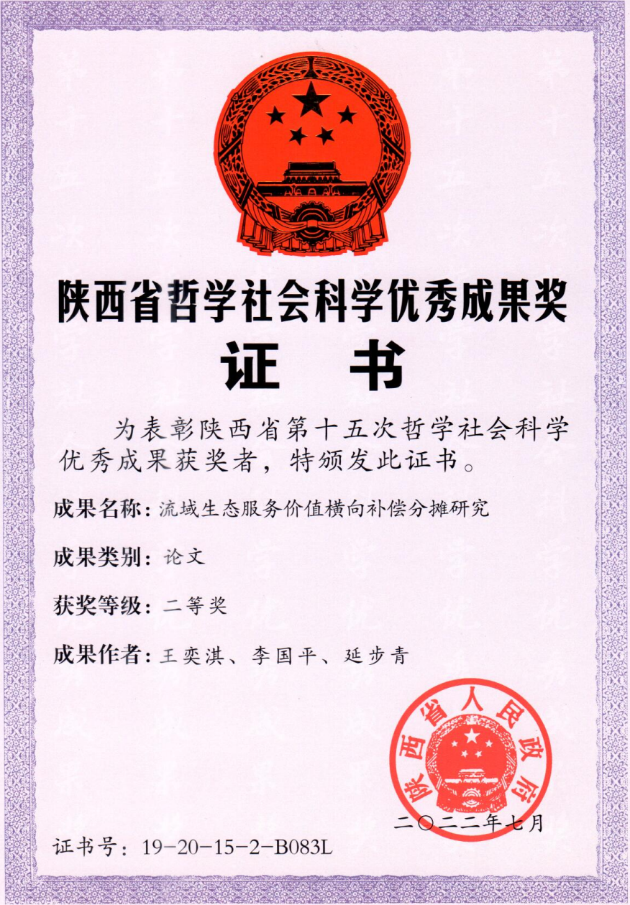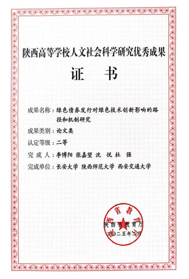 2025年获得陕西省高校人文社会科学研究优秀成果2项,2022年获得陕西省哲学社会科学优秀成果奖1项;2019年获得陕西省高校人文社会科学研究优秀成果1项。多名教师分别获得省级“优秀青年经济理论工作者”、“交通部软科学研究专家”、“长安大学最满意教师”、“先进科研工作者”、“长安大学优秀青年学者”等称号。