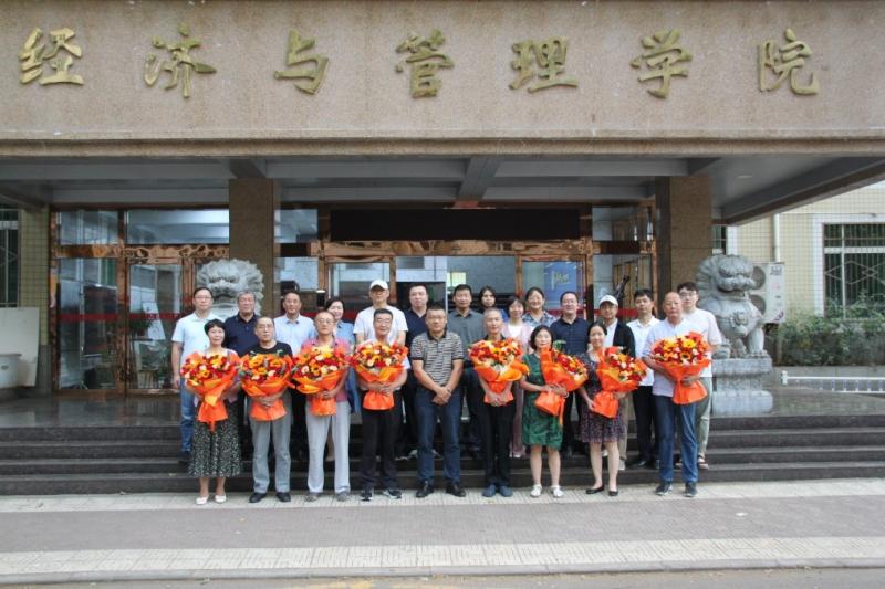 座谈会后,学院领导及教师代表向荣休老师献花和赠送纪念品,并进行合影留念。