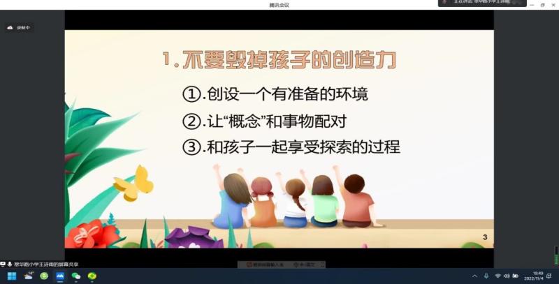 当今“双减”之下,为使学校教育与家庭教育有机结合,更好地形成教育合力,创造良好的育人环境,有效促进孩子健康快乐成长,帮助我院广大教职员工了解掌握家庭教育规律,给青少年儿童的成长造就一个健康适宜的家庭教育环境,2022年11月4日,我院工会特举办了一场主题为”读懂孩子,理解教育-做双减背景下的智慧父母“的家庭教育主题讲座。讲座由学院工会主席王东艳老师主持,翠华路小学王诗雨老师主讲,学院40多位家长在线上进行了聆听。
