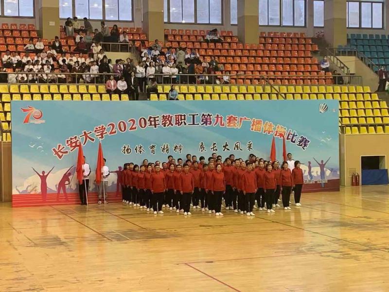 2020年11月15日下午,2020年长安大学教职工广播操比赛在本部北院体育馆举行,全校26个分会组队参加,我院积极组队参加,最终取得第九名的成绩。
