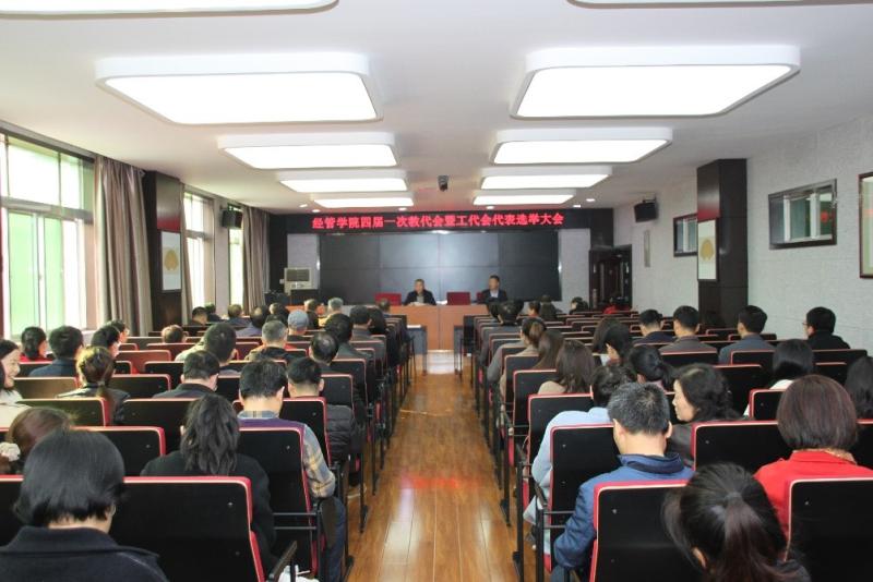 2020年11月11日下午,经管学院第四届一次教代会暨工代会在学院四楼多功能厅举行。学院党委书记魏一虎、工会主席王东艳及全体教职工出席,会议由学院党委副书记、副院长张建斌主持。