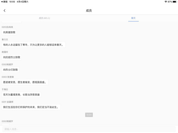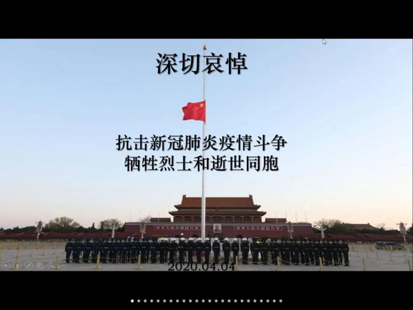 上午十点整,低沉哀鸣的防空警报响彻全国上空。全体参会师生与全国人民一起默哀三分钟,哀悼逝者,祈福生者。活动结束后,大家纷纷留言,表达了对英雄的敬仰,对逝者的哀悼。