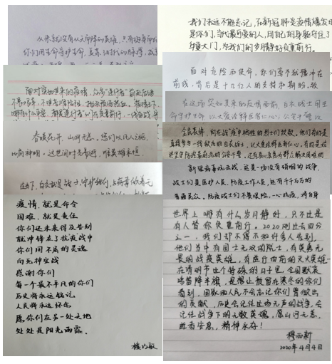 除了开展“云祭扫”外,支部还组织党员为牺牲烈士和逝世同胞手写寄语、悼词,学习抗击疫情中的英雄事迹等活动,激发广大党员爱党爱国爱社会主义热情,勇于担当历史使命,珍惜韶华,奋发学习,以优异的答卷告慰先烈,不负时代重托。