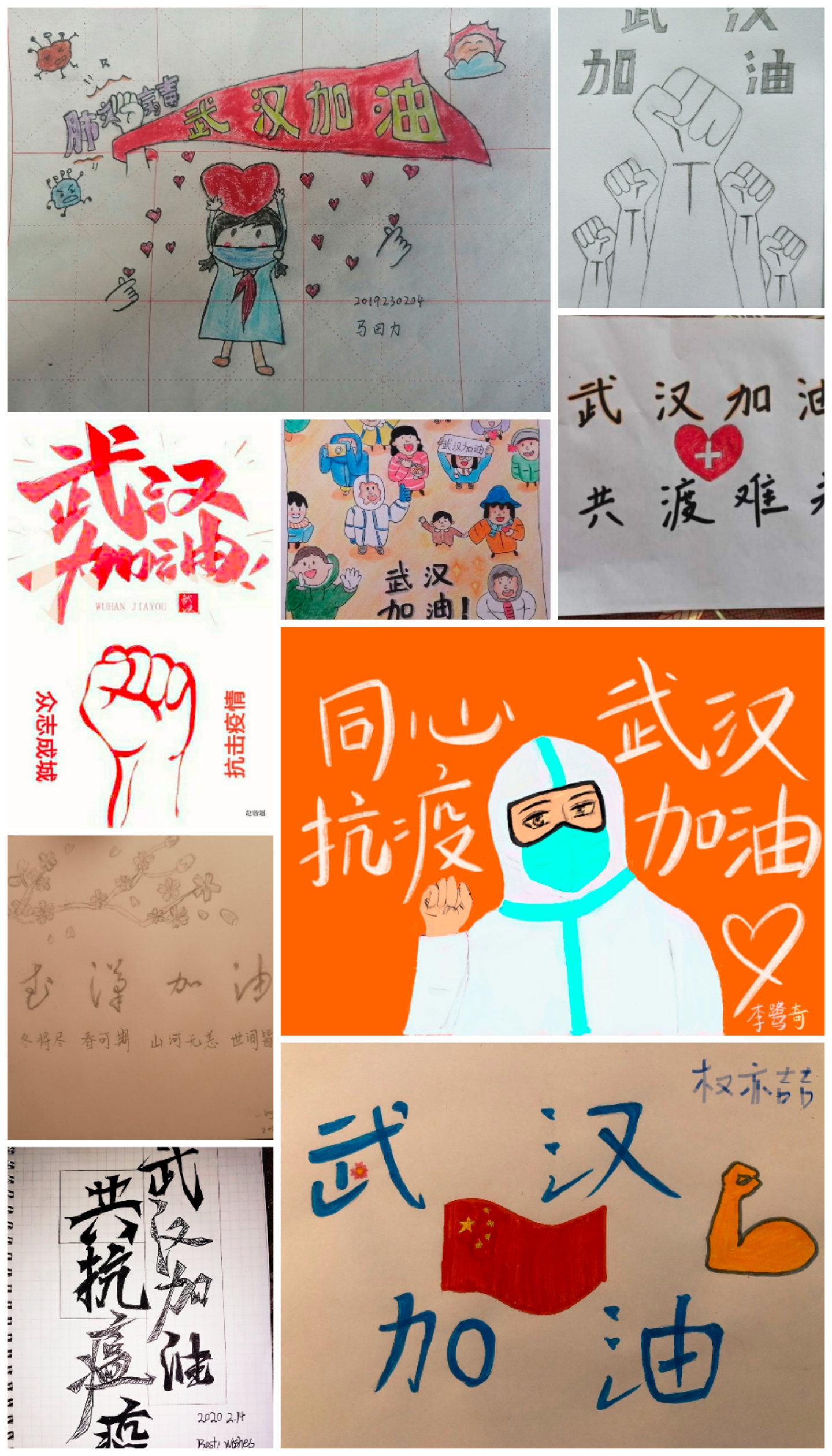 同学们也积极表示一定会听从学校的安排,积极配合各科老师开展线上教学,保证学习活动的顺利开展。大家也用自己的绘画作品表达了对抗击疫情的决心,集体为武汉加油!