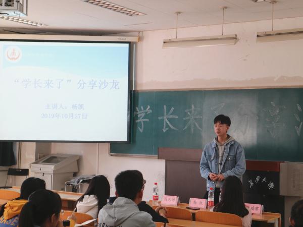 2019年10月27日下午3点,我院第十一期“学长来了”分享沙龙于明远1417教室顺利举办,我校交通运输管理专业2018届优秀毕业生杨凯到场与同学们分享自己的心得体会。我院学生工作办公室主任陈向涛、2018级辅导员张瑞君以及我院部分学生到场参加本次分享会。