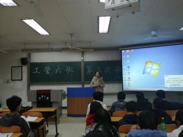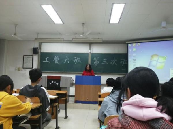 2019年11月13日晚,经济与管理学院2019级工商管理类六班第三次主题班会在修远2303召开,班会主题:学长进行经验分享和抵制非法宗教活动。班主任李倩老师、2015级企业管理专业研究生韩文亮及工管六班全体同学参加。