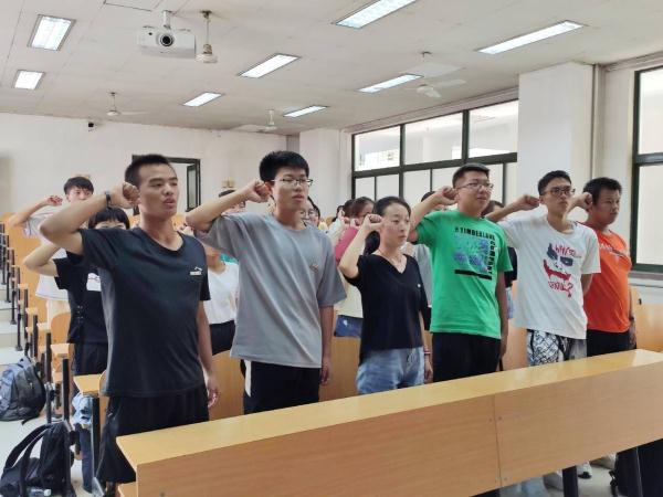 9时,团课圆满结束。9月25日15时50分,全体成员于修远2101室集合,进行团员宣誓。16时,全体团员整队肃立,佩戴校徽,在班长的领誓下庄严宣誓。