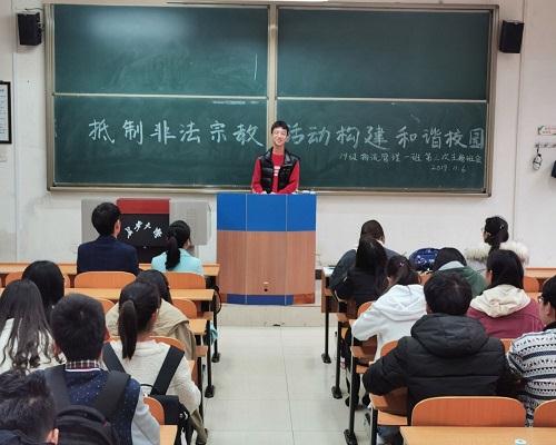 11月5日中午12:40在修远教学楼1104教室召开了“抵制非法宗教活动,构建和谐校园”班委会。此次班委会中,卓朋涛老师强调了国家法律层面宗教与教育相分离的原则,并用自己大学同学的真实经历讲述了非法宗教对社会秩序的不利影响,呼吁各班委作为学生骨干要带领各班同学积极抵制非法宗教活动,对校园内的宗教渗透时刻保持警惕,共同创建和谐校园。
