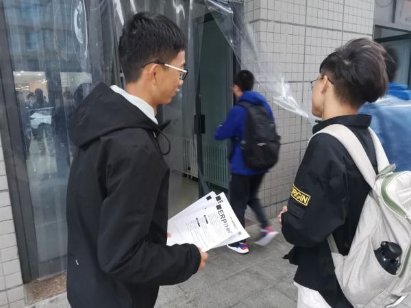 本次ERP沙盘模拟大赛的初期宣传活动主要分为三个部分,即搭设帐篷宣传点、发放宣传单及线上宣传。10月14、15日于滋兰苑广场和树惠园广场搭设宣传帐篷点,帐篷点内设值班人员为路过的同学们介绍ERP沙盘模拟大赛,解答同学们关于ERP大赛的疑问,同时提供并收集报名表;中午十二点,经管科协竞赛部的干事及交换生们在滋兰苑广场门口发放宣传单,并为来往的同学介绍ERP沙盘模拟大赛的规则及特点,解答了他们有关比赛时间、跨院组队等方面的问题。除此之外,在微信公众号“长大经管君”及经济与管理学院科协QQ空间也都推送了相关文章进行宣传。 15日晚,随着线下帐篷点宣传点的搬离,ERP沙盘模拟大赛的宣传正式结束。本次宣传活动使大家对ERP沙盘模拟大赛有了更加充分的了解,激发了同学们对于比赛的兴趣和参赛的热情。ERP沙盘模拟大赛的开办有利于同学们培养团队精神、提升沟通交流能力、锻炼全局观念以及规划能力。希望同学们踊跃报名参赛,也预祝大家在接下来的比赛中取得满意的成绩。