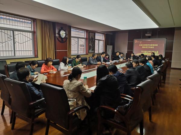 2018年10月17日,学院2018-2019学年本科生班主任工作会议在经管学院一楼会议室召开,学院党委书记魏一虎、院长袁长伟、党委副书记吴喜梅、年级辅导员及全体班主任老师参加会议。会议由党委副书记吴喜梅主持。