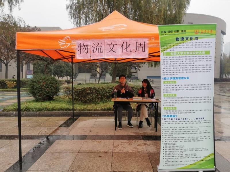 2021年4月18日,我校将迎来建校70周年华诞,为更好地传承长大精神,烘托校庆喜庆氛围,展示学校良好形象,同时,动员大家积极参加“中国外运杯”第七届全国大学生物流设计大赛,经济与管理学院物流管理系和经管学院大学生科技创新创业协会举行了为期一周的“物流文化周”活动,让大家认识物流、了解物流。本次“物流文化周”系列活动主要分为帐篷点宣传、发放宣传单与线上宣传三部分。11月17日至19日于滋兰苑、树蕙园、小时空广场搭设宣传帐篷点,帐篷点处设值班人员为感兴趣的同学介绍“物流文化周”活动并为同学们解答关于物流设计大赛的疑惑。每日中午十二时,经管科协干事们在各个帐篷点附近发放宣传单,宣传单上涵盖了物流设计大赛的主要特点及内容,解答了同学们关于物流是什么、物流的作用等问题,并着重介绍了大赛的赛制与规则。除此之外,长大经管科协官方QQ发布了关于本次活动的动态,通过网络宣传鼓励同学们了解物流,学习物流,踊跃参加物流设计大赛国赛。