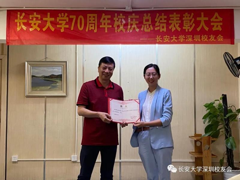 2021年4月27日,在深圳市第七次党代会召开的大喜日子里,长安大学深圳校友会在深圳举行了长安大学70周年校庆校友工作总结表彰大会。校友会会长梁仕荪、副会长陈爱华、杨国强、雷玉斌,秘书长于莹,副秘书长杨志勇、穆毅、刘士江、李翔以及部分优秀校友代表参加了本次表彰会议。大会由秘书长于莹主持。
