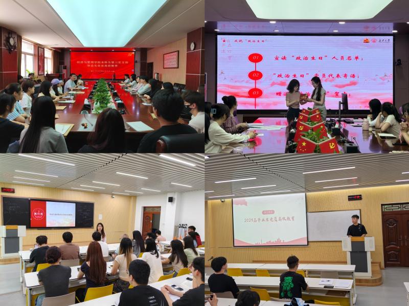 经管学院各学生党支部通过主题党日活动等形式,引导毕业生坚定理想信念,增强爱国主义情怀。本科生第二党支部紧密围绕立德树人根本任务,以“坚定理想信念、厚植家国情怀、强化使命担当、安全文明离校”为主题,聚焦学习贯彻党的创新理论,引导毕业生深刻领会新时代青年的责任与使命,结合国家发展战略与行业发展趋势,开展形势政策教育,激励毕业生将个人理想融入强国建设、民族复兴的伟大事业中。硕士生会计学第一党支部开展“铭记政治生命起点,永葆党员先进本色”政治生日庆祝暨毕业生党员离校教育活动,以庄严而温暖的仪式,共同庆祝“政治生日”,回顾入党初心,汲取奋进力量,鼓励毕业生在未来的工作和生活中,为实现个人价值和社会价值而努力奋斗。