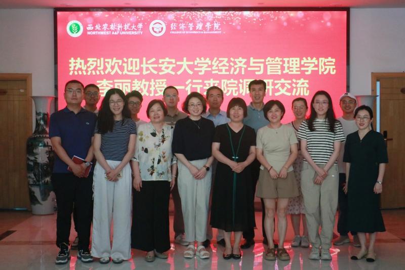为更好地推动数字经济专业建设,2025年6月12日下午,经济系学科负责人李丽教授与经济系系主任孙铭副教授带队,赴陕西杨凌西北农林科技大学经济管理学院调研交流,我院经济系副主任李博阳、郑明波与相关青年骨干教师参与调研。西北农林科技大学经济管理学院经济学系主任王秀娟、数量经济教研室主任王永强、实验教学中心副主任马兰及相关人员参加座谈。