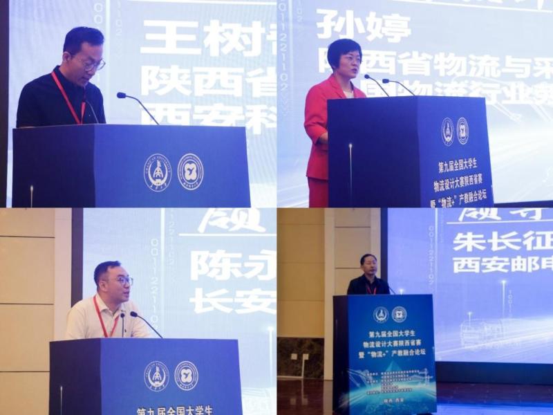 陕西省高等学校教学指导委员会秘书处、西安科技大学教务处副处长王树奇代表指导单位致辞。陕西省物流与采购联合会监事长孙婷、长安大学教务处副处长陈永楠、西安邮电大学现代邮政学院副院长朱长征代表主办单位致辞。