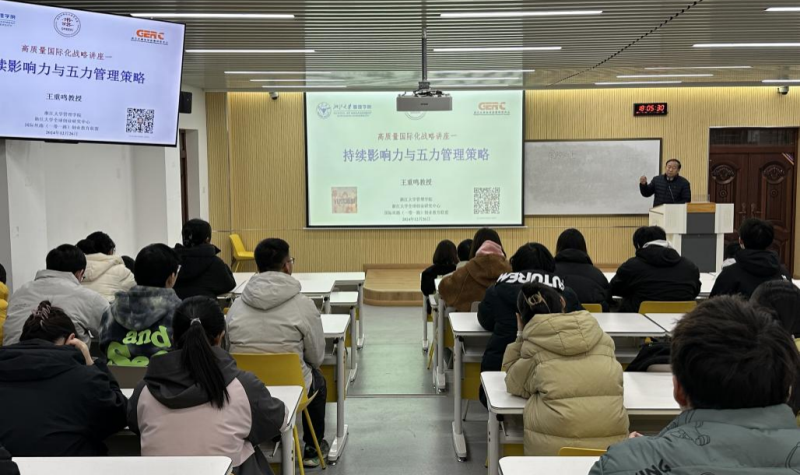 12月26日晚,浙江大学管理学院教授、浙江大学全球创业研究中心主任、浙江大学人力资源与战略发展研究中心主任王重鸣教授应邀为经济与管理学院师生在181教室做“持续影响力与五力管理策略”为主题的学术讲座,学院MBA学生、管理类相关专业硕士生、本科生近60余名学生代表参与本次讲座,讲座由学院副院长杨伟主持。