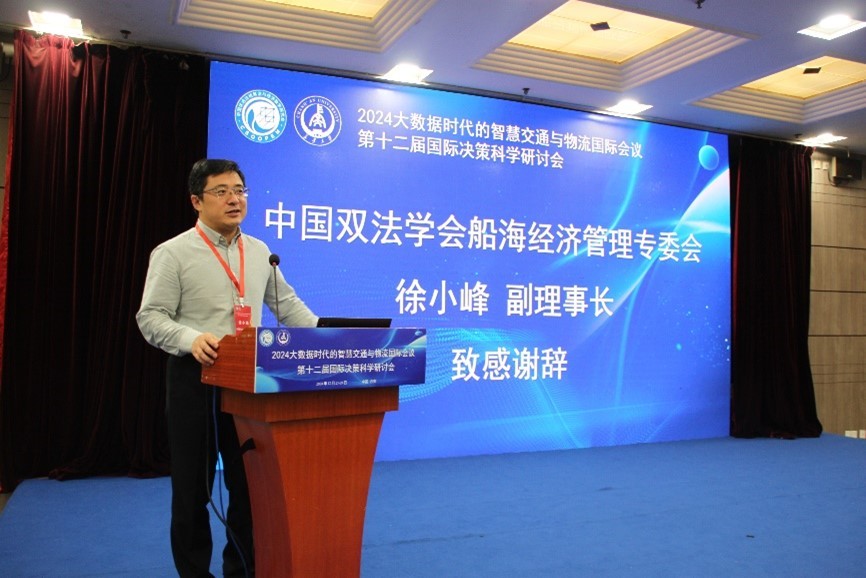 中国双法学会船海经济管理专委会副理事长徐小峰为到会嘉宾致感谢辞,他表示,本次会议为从事交通运输、供应链物流、决策科学的研究人员搭建了一个交流和探讨的平台,希望各位专家学者充分交流,开拓新思路、新概念、新方法。