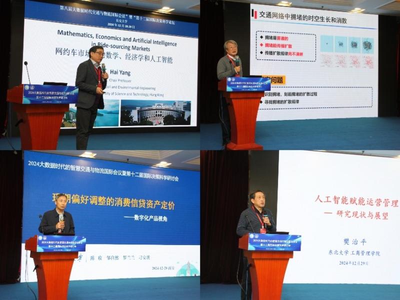 会议为期三天,共计呈现了10场由业内资深专家带来的前沿报告、3场企业论坛、24场分组报告。东北大学唐立新院士、香港科技大学杨海讲席教授、北京航空航天大学经济管理学院黄海军教授、东北大学信息科学与工程学院黄敏教授、湖南大学工商管理学院陈收教授、南开大学人文社会科学研究部常务李勇建副部长、美国德雷塞尔大学Benjamin Lev教授、谢菲尔德大学Francisco Saldanha da Gama教授、西南交通大学经济管理学院韩科院长、东北大学工商管理学院樊治平教授、电子科技大学机械与电气工程学院刘宇院长、国家能源集团港航专业首席专家李长安高级工程师、北京嘀嘀无限科技发展有限公司丁俊强总监、陕西延长石油道奇物流科技有限公司顾鑫副总经理等十三位专家分别就“制造循环工业系统物流解析与优化”、“面向按需出行服务的数学”、“基于大数据分析的城市交通拥堵的生长与消散特征”、“经济学与人工智能”、“物流网络设计中的设施协作规划”等议题进行了深入的探讨与分享。