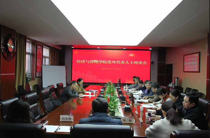 为更好发挥党外人士在学院改革发展中的作用,提升学院民主党派参政议政建言献策的能力,11月28日下午,经济与管理学院在学院一楼会议室召开党外人士座谈会,统战部部长石松、统战部副研究员刘小莉、学院党政领导、学院全体党外人士参加了座谈会,会议由学院党委副书记、副院长、纪委书记龚少博主持。