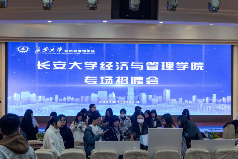长安大学经济与管理学院专场招聘活动在学术交流中心一层报告厅开展。毕业生们积极参与应聘求职,与各招聘单位工作人员沟通交流、投递简历,活动取得良好效果。