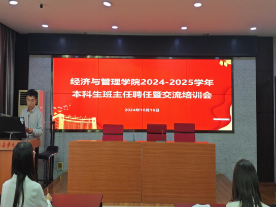 为深入贯彻党的二十届三中全会精神和全国教育大会精神,贯彻落实习近平总书记关于教育的重要论述,进一步完善“三全育人”工作体系,提升人才培养质量,助力学生健康成长,经济与管理学院于10月16日在学院407会议室召开2024-2025学年本科生班主任聘任仪式暨交流培训会。学生工作办公室主任李晔,优秀班主任代表孙伟,全体新聘任班主任,2023级、2024级本科生辅导员以及各班学生代表参加了会议。