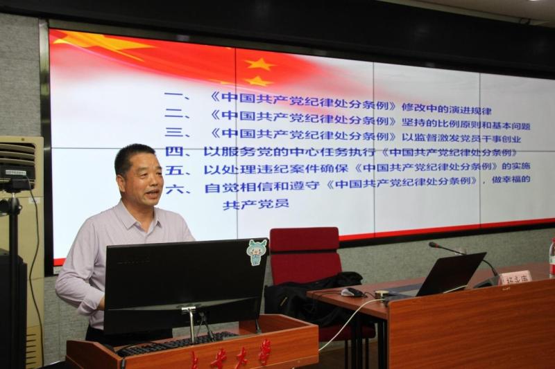 为深入学习贯彻新修订的《中国共产党纪律处分条例》,进一步增强学院全体党员的纪律意识和规矩意识,推动党纪学习教育走深走实,经管学院于5月15日下午在四楼会议室举办党纪学习教育专题讲座暨党委理论学习中心组集体学习会,邀请西安文理学院马克思主义学院教授杨永庚进行授课。院党委委员、科级干部及全体党员参加,讲座由学院党委副书记、副院长龚少博主持。