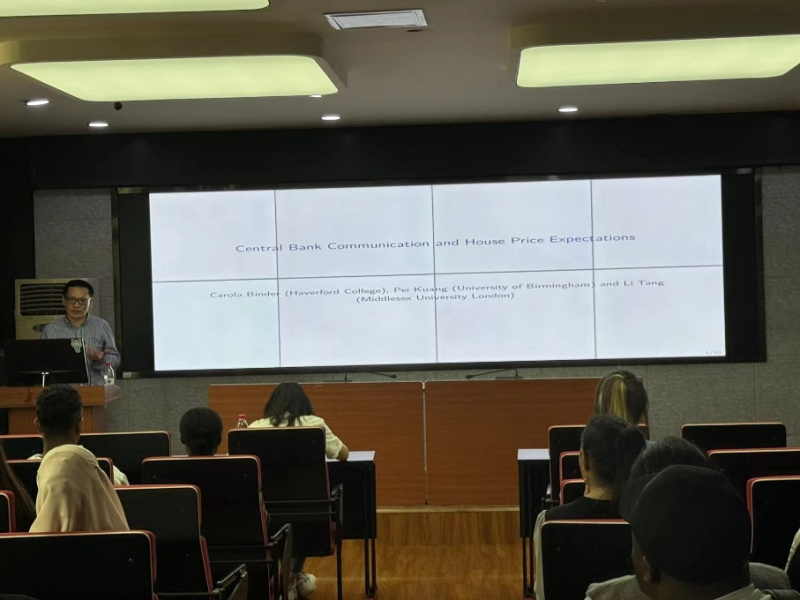 2024年4月15日下午,英国伯明翰大学旷裴(Pei Kuang)副教授应长安大学邀请,经济与管理学院和国际处联合组织,在经管学院407会议室举行以“货币政策和房价预期”为主题的学术讲座。经管学院国际学生、研究生积极参会。
