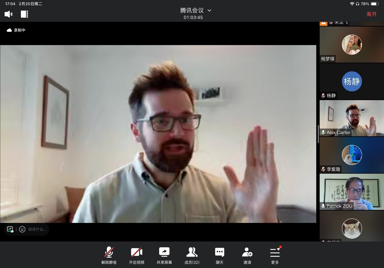 2月20日下午,我院特邀英国剑桥大学Alexander David Carter教授为师生作题为“Can an AI be as creative as a human?”的学术报告。本次报告以线上形式举行,由邹小伟教授主持,我院60多名师生参加此次活动。
