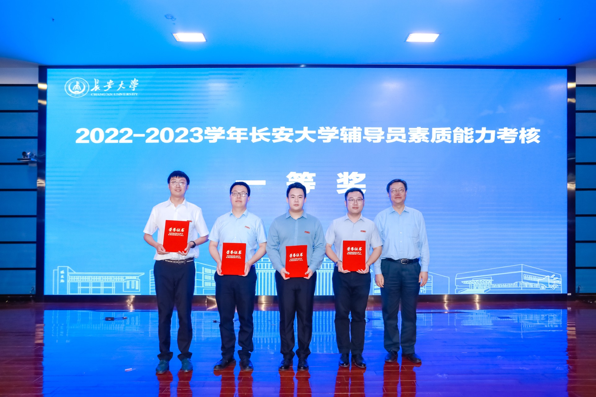 6月14日,2022-2023学年长安大学辅导员素质能力考核决赛在北辰楼会议中心二层报告厅举行,校党委书记陈志坚、党委副书记黎开谊出席决赛现场。院党委副书记李宏伟和学院辅导员到场观摩比赛。校党委副书记黎开谊为我院颁发了长安大学2022-2023学年优秀二级心理辅导站奖牌。