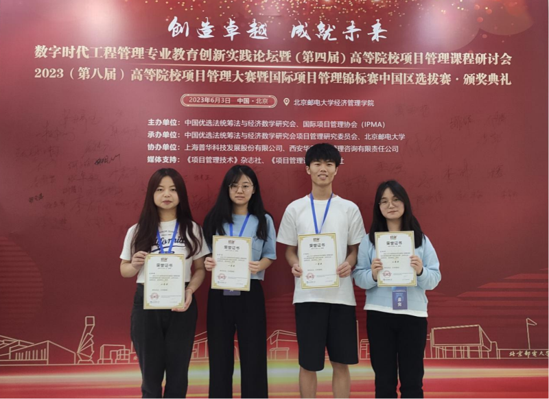 该届全国高等院校项目管理大赛是由中国优选法统筹法与经济数学研究会和国际项目管理协会(IPMA)主办,中国优选法统筹法与经济数学研究会项目管理研究委员会(PMRC)和北京邮电大学承办。大赛旨在推动项目管理理论知识和实践成果在中国高等院校青年大学生中的普及和应用,为高等院校开展项目管理理论与实践教学交流搭建平台,推动培育具有国际视野和系统思维、具备独立思考和自由探索精神、善于开拓和勇于创新的中国项目管理青年后备人才。通过参加此次比赛,参赛同学们提高了团队合作意识和项目管理能力,并在一定程度上掌握了项目管理理论知识。