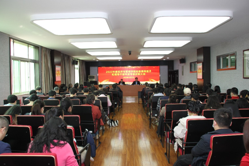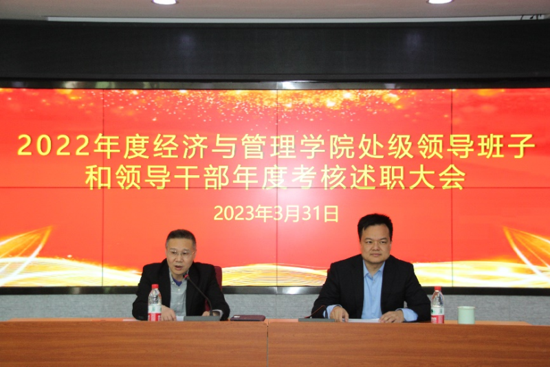 2023年3月31日下午,经管学院2022年度处级领导班子和领导干部年度考核述职大会在学院四楼会议室召开,学院领导班子全体成员及全体教职工参加会议,会议由学院党委书记孙启鹏主持。