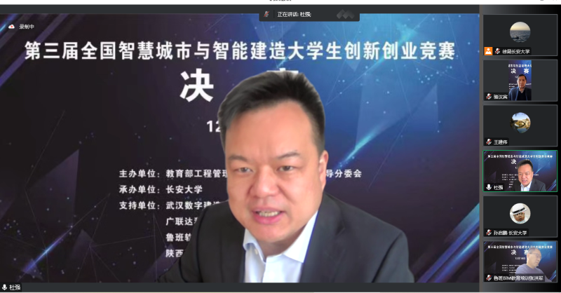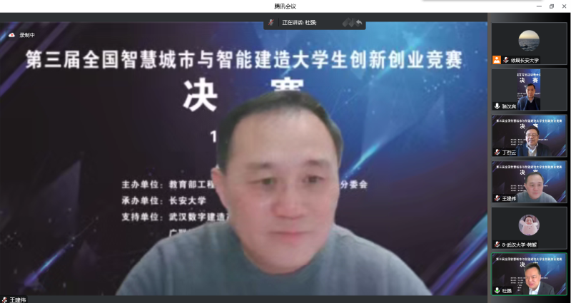 为了全面培养大学生的创新思维和科研能力、培养团队精神、增强大学生工程管理创新与实践能力、促进全国高校大学生创新创业和相互交流学习,第三届全国智慧城市与智能建造大学生创新创业竞赛由教育部工程管理和工程造价专业教学指导分委会主办、长安大学承办。我院高度重视此次竞赛,周密部署动员,组成了由校长助理、经管学院院长杜强教授,经管学院孙启鹏书记领导的竞赛组委会。竞赛自8月10日启动以来,经过了校赛、省赛、复赛等多轮选拔,于2022年12月18日通过线上方式举行了决赛答辩与评审,决赛开幕式由校长助理、经管学院院长杜强教授主持。