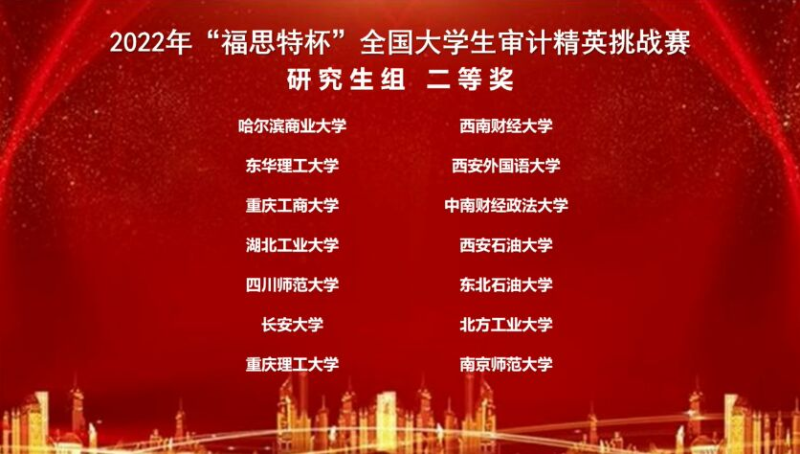 2022年11月26日,由中国审计学会审计教育分会主办,南京审计大学政府审计学院承办,广州市福思特科技有限公司提供技术支持的2022年“福思特杯”全国大学生审计精英挑战赛,在南京审计大学隆重举行。来自全国340所院校的72个研究生团队、258个本科生团队、60个高职团队,共390个团队1800多名师生参加了此次竞赛。此次竞赛采用全程线上竞赛模式。