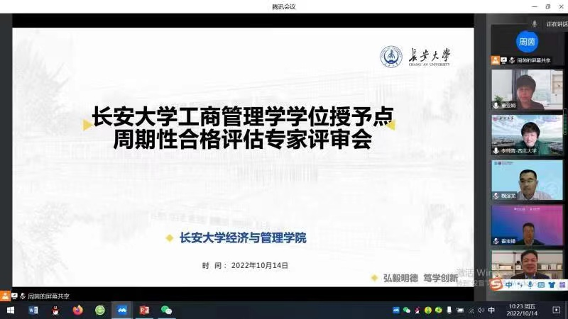 我院于10月14日至22日,分别组织管理科学与工程、工商管理、资产评估、MBA、MPAcc、MEM等6个学位授权点陆续召开了周期性合格评估自评报告专家评审会。来自教育部学科评议组成员、教指委委员及行业专家共25名专家参加线上评审会。校长助理、院长杜强教授,院党委书记孙启鹏教授,研究生院副院长柳有权教授,副院长马飞、各学科责任教授、专业责任教授、研究生教学管理工作人员等100余名教师分组参加了评审会。