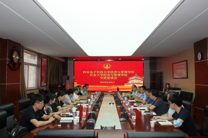 6月22日下午,西安电子科技大学经济与管理学院院长谢军占、执行院长柴建一行9人来我院交流座谈,校长助理、学院院长杜强、党委书记魏一虎、学院领导班子成员及教师代表参加了会议。会议由魏一虎主持。