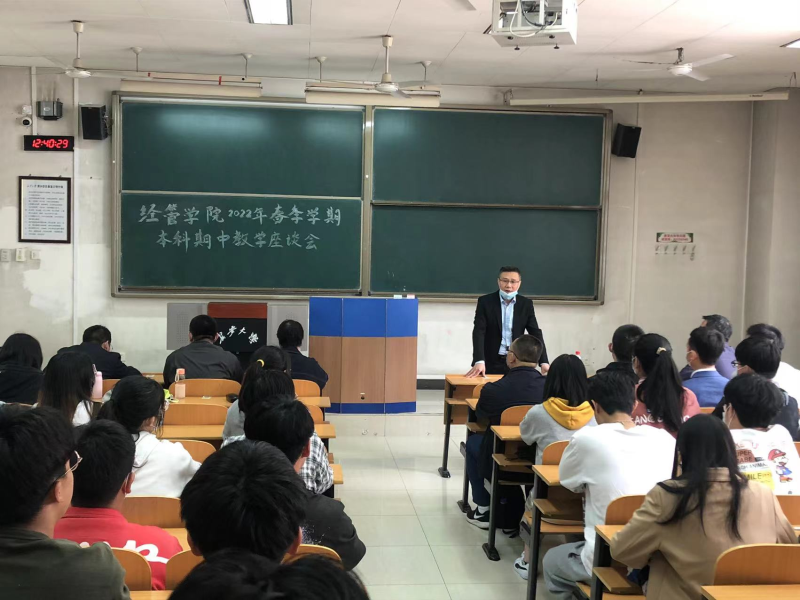 5月13日中午12:40,我院在渭水校区修远教学楼WX2201教室召开本科期中教学座谈会。学院主管教学工作副院长,主管学生工作副书记,各系室主任、教学督导、学生工作办公室和教务办全体人员、教师代表、四个年级学生代表参加了会议,会议由孙启鹏副院长主持。