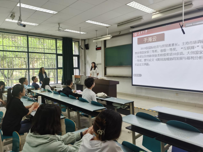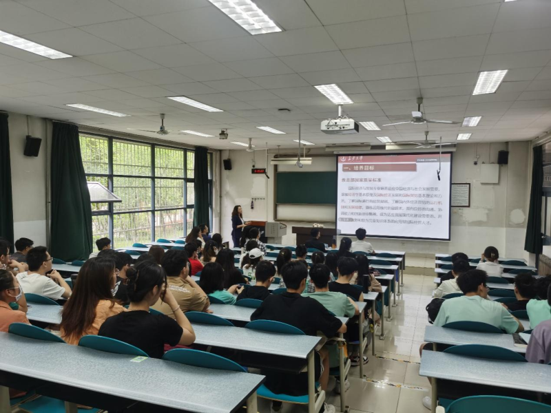 会议伊始,国际经济与贸易专业责任教授孙铭老师从专业课程设置、培养计划、专业特色、未来就业以及考研深造等方面介绍了国际经济与贸易专业的情况。