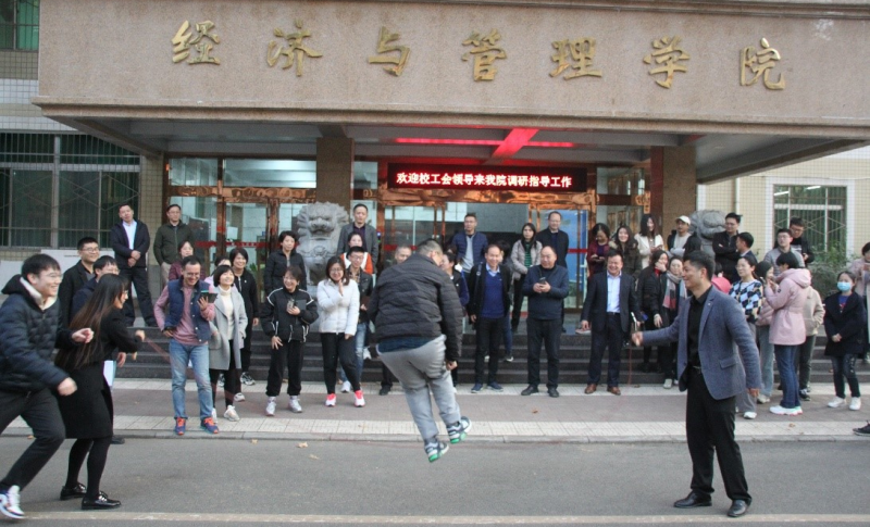 会后,校工会领导与学院教职工在学院门前参加了跳大绳活动。