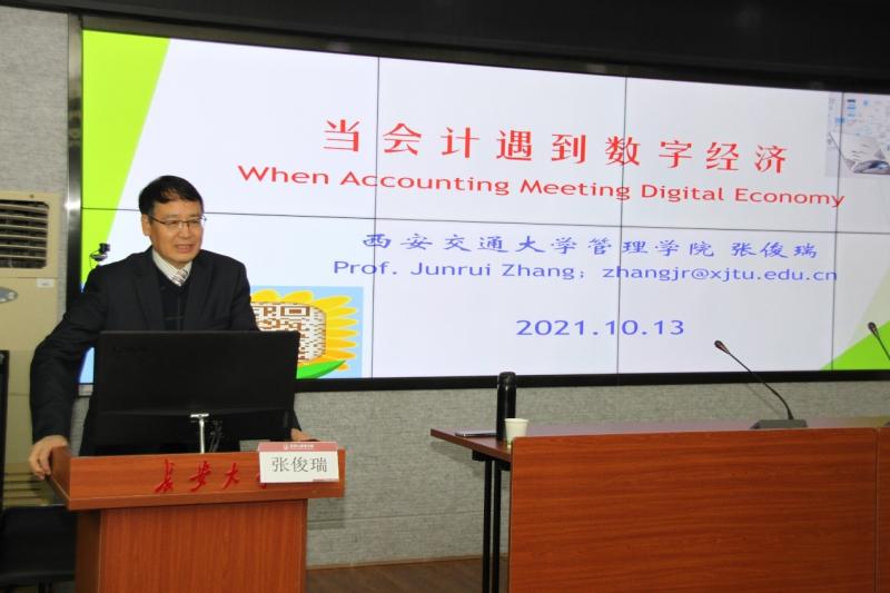 10月13日,西安交通大学管理学院张俊瑞教授来我院进行了主题为“当会计遇到数字经济”的学术讲座。经济与管理学院部分教师及学生代表参加了此次讲座,讲座由副院长马飞主持。