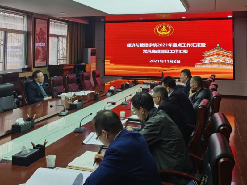 2021年11月2日下午,校党委常委、副校长王建伟到我院调研指导2021年重点工作及党风廉政建设工作,学院全体领导参加会议。