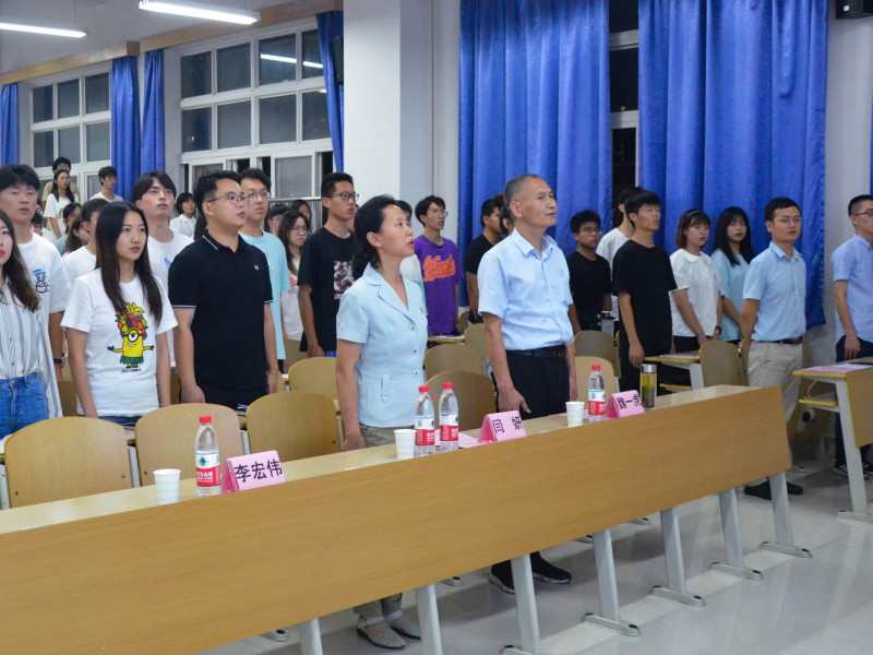 典礼在庄严的国歌声中拉开帷幕。闫妍老师在致辞中指出,我国的高等教育,旨在培养立志为中国特色社会主义奋斗终身的有用人才,希望全体学员坚定理想信念,立心铸魂,加强理论武装,争做新时代敢为人先、勇敢担当的有志青年;希望全体学员锤炼品德修为,增强党性,自觉自觉践行社会主义核心价值观;希望全体学员学思践悟,知行合一,加强理论修养,增强理论自信;希望全体学员对标对表,发挥先锋模范作用,践行请党放心、强国有我的青春誓言。