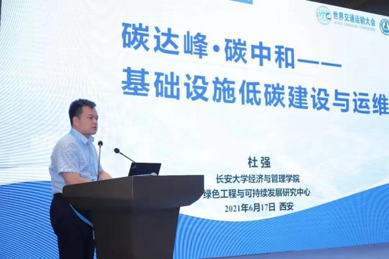 杜强院长担任了“公路交通路衍经济产业发展论坛”访谈环节的主持人和“第一届交通运输领域碳达峰碳中和与可持续发展论坛”后半部分的主持人,并作《碳达峰·碳中和——基础设施低碳建设与运维》的主题演讲。杜强院长在我国提出二氧化碳排放力争2030年前达到峰值,2060年前实现碳中和的背景下,结合新时代我国新型基础设施建设与运维模式和阶段性任务,从绿色建造技术创新与应用管理、工程行业低碳建造与运维管理等方面对我国基础设施低碳发展现状进行梳理。总结低碳工程管理“三步曲”,即宏观政策-中观行业-微观项目的低碳发展模式;聚焦装配式建筑集群供应链,探究装配式建筑集群供应链低碳行为驱动机制及减排机理;关注区域交通基础设施与经济、碳排放的协同发展关系,并探讨“一带一路”背景下交通基础设施对碳排放转移的影响和减排路径。基于基础设施可持续相关研究,提出“双碳”目标下基础设施建设与运维的低碳发展建议。