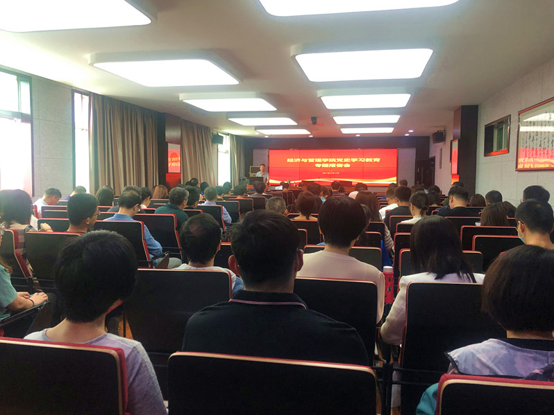 为推动党史学习教育走深走实,从党的百年奋斗史中汲取智慧和力量,5月19日,经管学院在学院四楼多媒体教室举办党史学习教育专题报告会。会议邀请长安大学党史学习教育宣讲团成员、马克思主义学院田猛教授作宣讲报告。学院党政领导、全体教职工和学生党员代表共100余人参加会议。会议由学院党委副书记张建斌主持。