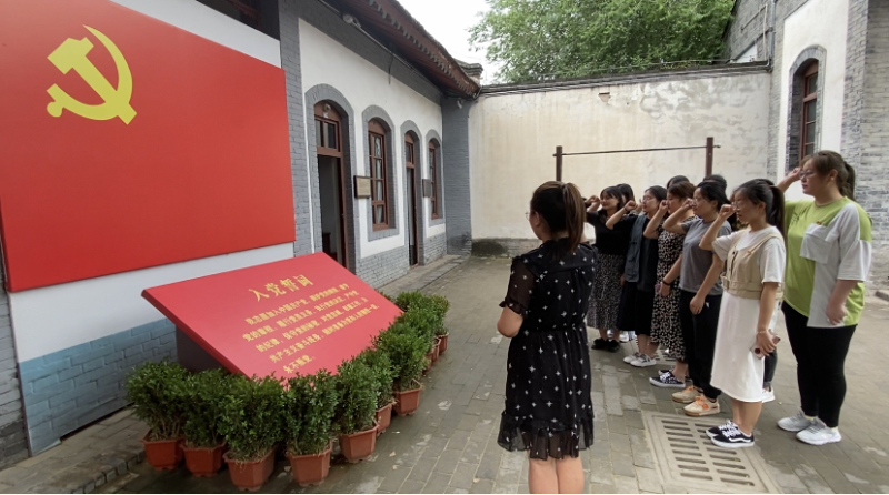参观结束后,支部书记邓云鸽带领党员在党旗下重温入党誓词。