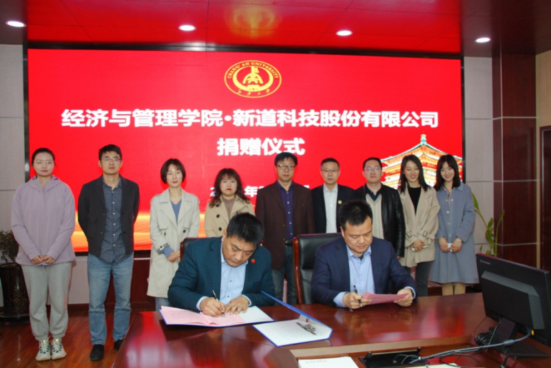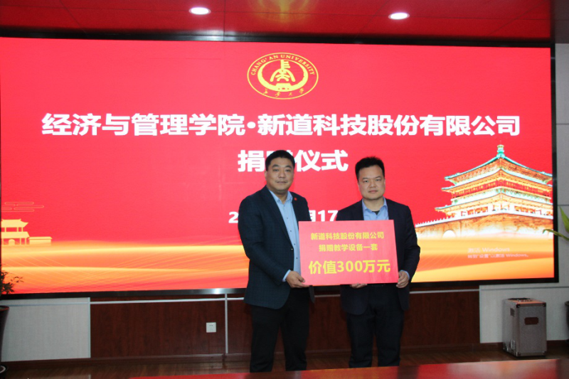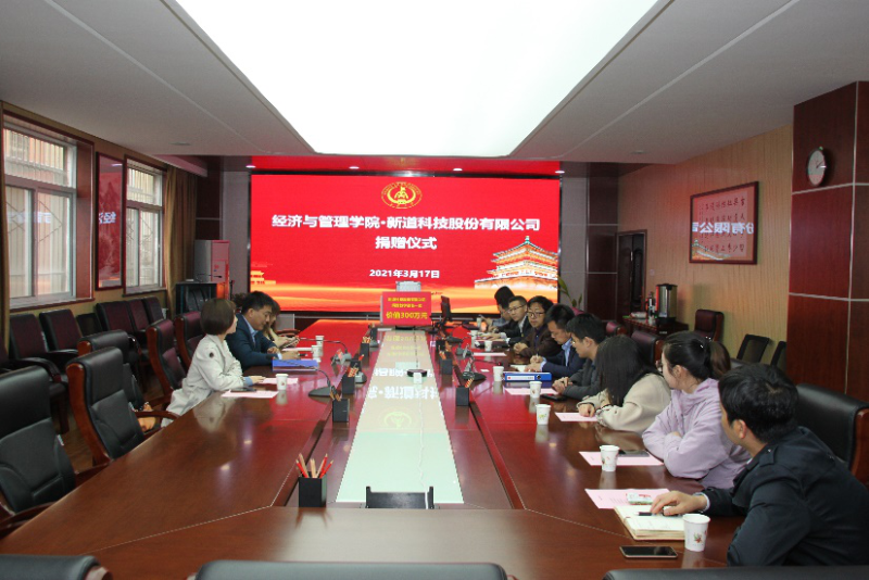 3月17日上午,新道科技股份有限公司为我院捐赠了价值三百万的教学设备,捐赠仪式在我院一楼会议室成功举办。新道科技股份有限公司西北地区负责人张桐一行三人、长安大学社会合作处处长邓云朝、我院院长杜强、副院长孙启鹏及校庆筹备工作组全体成员出席了捐赠仪式。