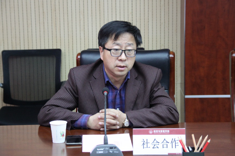 社会合作处处长邓云朝代表学校对新道科技股份有限公司的捐赠表示了诚挚的感谢,并谈到,这次捐赠既是对学生教育教学工作和学校“双一流”建设的支持,也是对企业软件设备的一次大力推广,是学校和企业良好合作的开端。