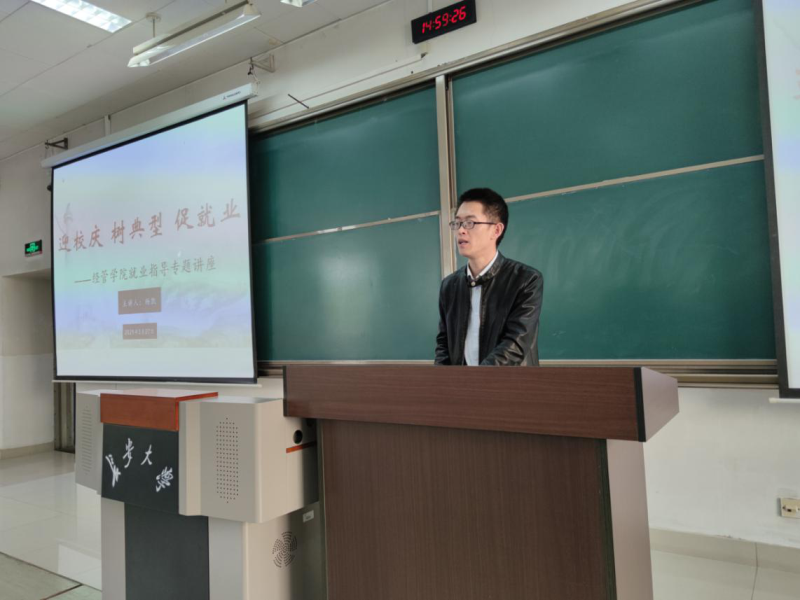 按照学校“迎校庆、树典型、促就业”工作总体部署,为引导学生做好职业规划,提升职业能力和就业竞争力,3月27日,我院在WM1201开展了2018级本科生就业指导专题讲座,邀请我院2018届优秀毕业生、京东西北区域快运业务能力建设高级主管杨凯做专题分享与指导。2018级辅导员张瑞君以及2018级本科生代表参加了讲座,讲座由学生工作办公室副主任陈宏进主持。