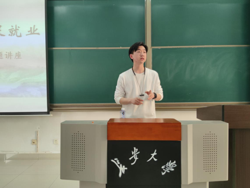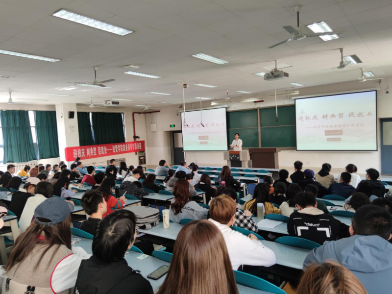杨凯结合个人经历,从职业选择、职业规划和面试技巧等方面为同学们提供了系统的指导。他表示,就业选择应当考虑就业城市、就业领域等多个维度,在岗位上应该潜心做事、爱岗敬业,做到为人处事勤勤恳恳,学会灵活处理人际关系。同学们积极提问,杨凯解答疑惑,就面试技巧、实习选择等进行了回答。