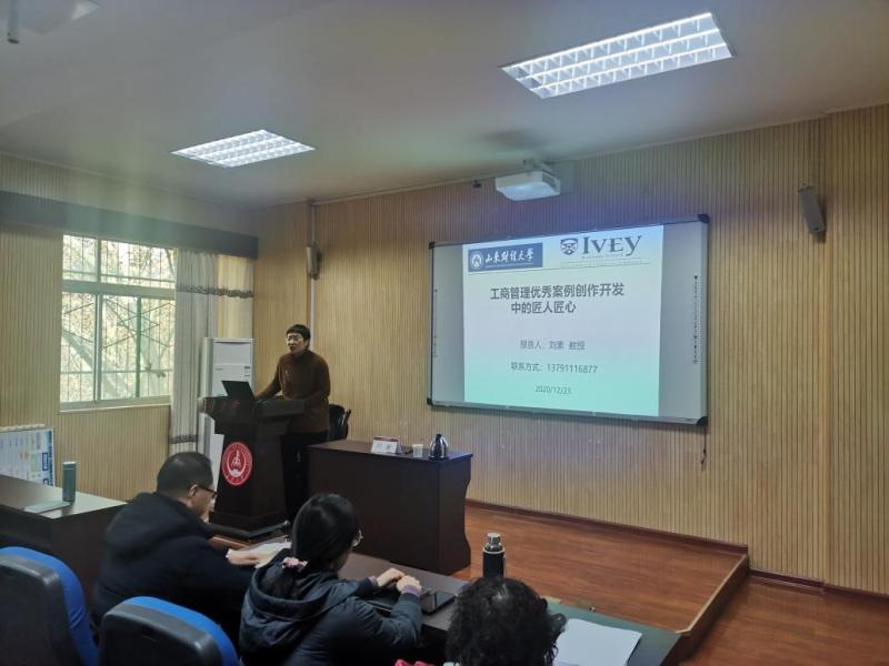 2020年12月23日下午,我院在六楼报告厅举办工商管理案例开发与教学讲座,山东财经大学刘素教授为我院师生做了题为“工商管理优秀案例创作开发中的匠人匠心”的专题报告。本次讲座由经管学院副院长马飞主持,学院各系教师及部分研究生近40人参与了本次讲座。