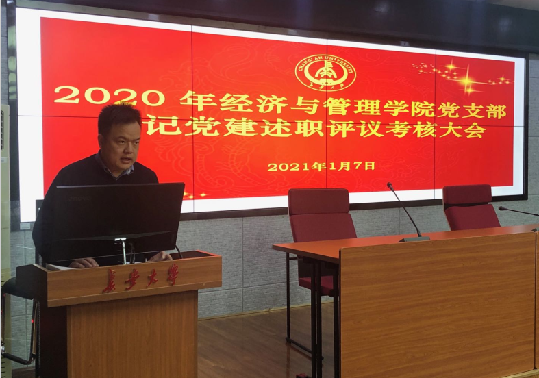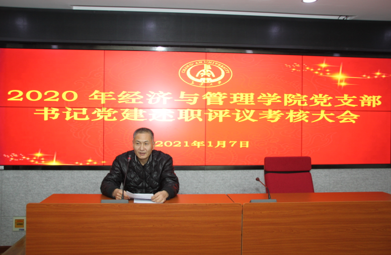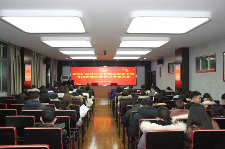 2021年1月7日下午19点,经管学院在学院四楼会议室召开2020年度党支部书记党建述职评议考核工作会议。学院党政领导、各党支部全体委员、党员代表等60余人参加会议,会议由学院党委秘书王菁主持。